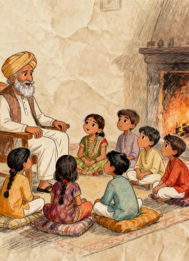 The document When the Worlds Were Young is a woven narrative in which a grandfather shares ancient stories of creation, divine beings, and cosmic lessons with his grandchildren. Through vivid retellings of Brahmā, Viṣhṇu, Śhiva, and the goddesses who embody knowledge, prosperity, and strength, the story blends mythology with gentle moral teachings. Each chapter, from the universe’s first breath to the cycles of creation and dissolution invites the children to reflect on humility, balance, courage, and the divine presence within themselves. Ultimately, the work uses mythic storytelling as a lamp to guide readers toward wisdom, compassion, and a deeper understanding of life’s spiritual rhythms.